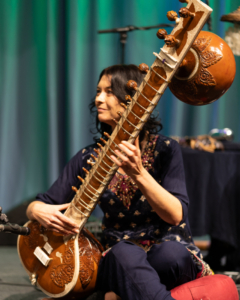 Maria Jung spielt seit über 10 Jahren Sitar. Die Sitar ist eines der populärsten Musikinstrumente der nordindischen Musik. Sie hat 20 Saiten und einen langanhaltenden, obertonreichen Klang.